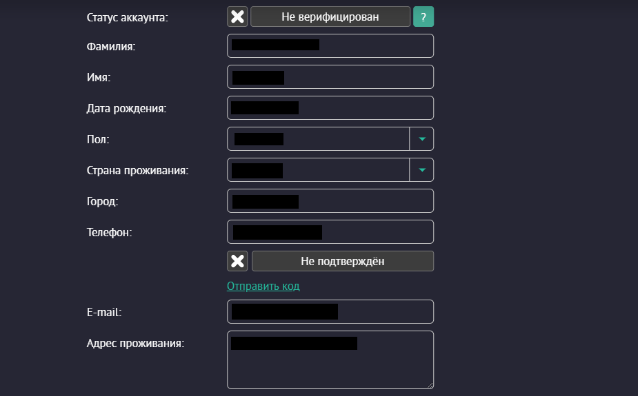 - Заполнить анкету, где пользователю потребуется указать личные данные: адрес проживания и номер телефона. Рекомендуется придумать надежный пароль, включающий в себя цифры, символы и буквы.